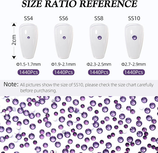 Neon Purple Flatback Rhinestones, Glass Rhinestones for Nail Art and Craft, Glue Fix, Loose Crystal Gemstones(Neon Purple, SS6, 1440pcs, 1.9-2.0mm)