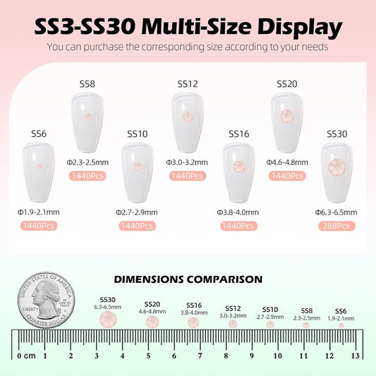 Rose Flatback Rhinestones, Glass Rhinestones for Nail Art and Craft, Glue Fix, Loose Crystal Gemstones(Rose, SS12, 2880pcs, 2.9-3.0mm)