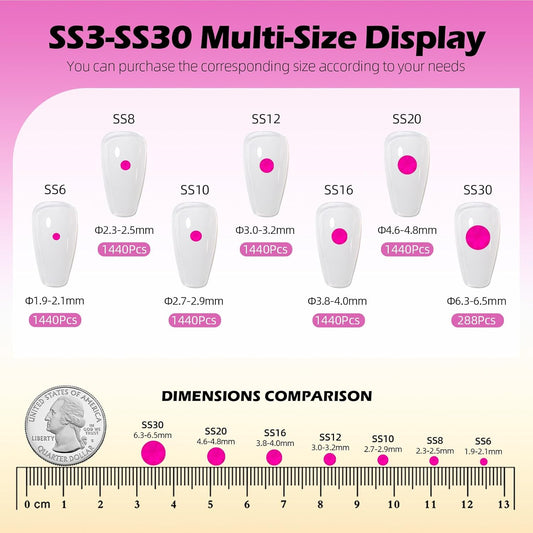 Neon Rose Flatback Rhinestones, Glass Rhinestones for Nail Art and Craft, Glue Fix, Loose Crystal Gemstones(Neon Rose, SS10, 1440pcs, 2.7-2.8mm)