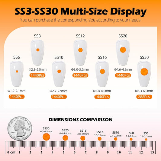 Hyacinth Flatback Rhinestones, Glass Rhinestones for Nail Art and Craft, Glue Fix, Loose Crystal Gemstones(Orange, SS12, 1440pcs, 2.9-3.0mm)