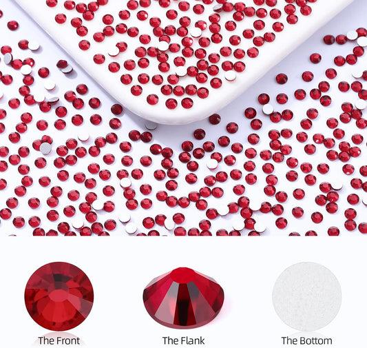 Siam Flatback Rhinestones, Glass Rhinestones for Nail Art and Craft, Glue Fix, Loose Crystal Gemstones(Siam, SS4, 2880pcs, 1.5-1.7mm)