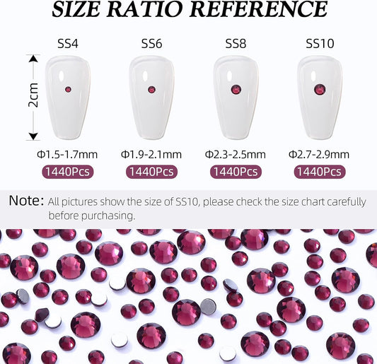 Purple Flatback Rhinestones, Glass Rhinestones for Nail Art and Craft, Glue Fix, Loose Crystal Gemstones(Purple, SS10, 1440pcs, 2.7-2.8mm)