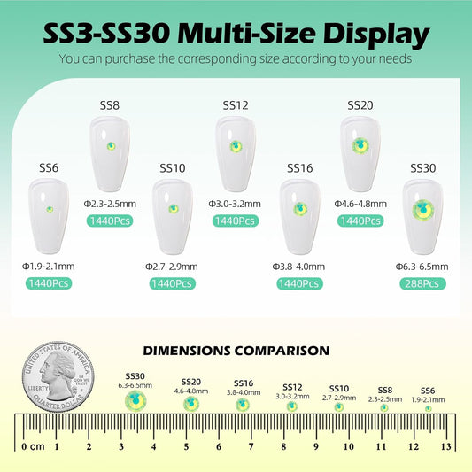 F Green Flatback Rhinestones, Glass Rhinestones for Nail Art and Craft, Glue Fix, Loose Crystal Gemstones(F Green, SS10, 1440pcs, 2.7-2.8mm)