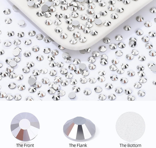 Crystal Clear Flatback Rhinestones, Glass Rhinestones for Nail Art and Craft, Glue Fix, Loose Crystal Gemstones(Crystal, SS12, 1440pcs, 2.9-3.0mm)