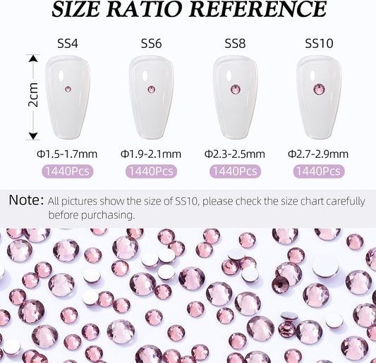 Light Amethyst Flatback Rhinestones, Glass Rhinestones for Nail Art and Craft, Glue Fix, Loose Crystal Gemstones(Lt.Amethyst, SS10, 1440pcs, 2.7-2.8mm)