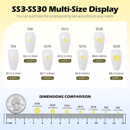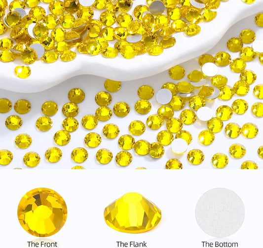 Yellow Flatback Rhinestones, Glass Rhinestones for Nail Art and Craft, Glue Fix, Loose Crystal Gemstones(Yellow, SS6, 2880pcs, 1.9-2.0mm)