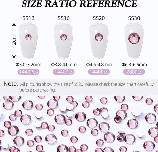 Rose Flatback Rhinestones, Glass Rhinestones for Nail Art and Craft, Glue Fix, Loose Crystal Gemstones(Rose, SS10, 1440pcs, 2.7-2.8mm)