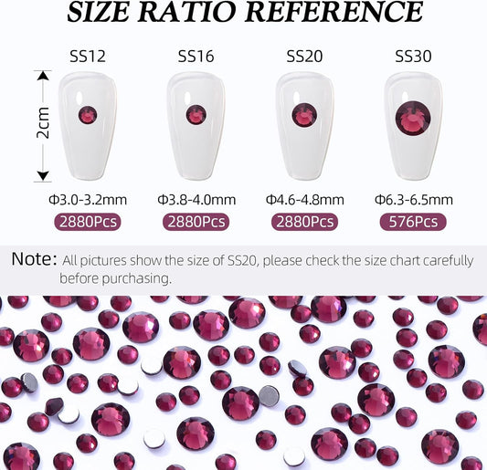 Mocha Lt.red Flatback Rhinestones, Glass Rhinestones for Nail Art and Craft, Glue Fix, Loose Crystal Gemstones(Mocha Lt.red, SS6, 1440pcs, 1.9-2.0mm)