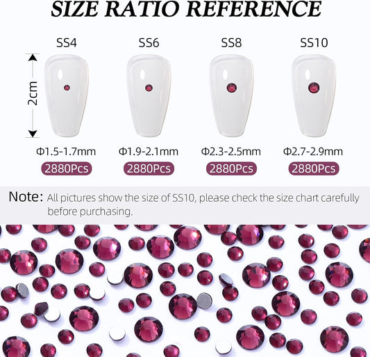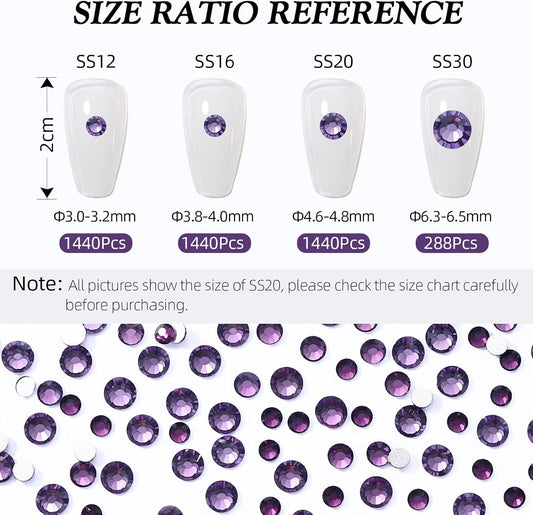Purple Flatback Rhinestones, Glass Rhinestones for Nail Art and Craft, Glue Fix, Loose Crystal Gemstones(Purple, SS12, 2880pcs, 2.9-3.0mm)