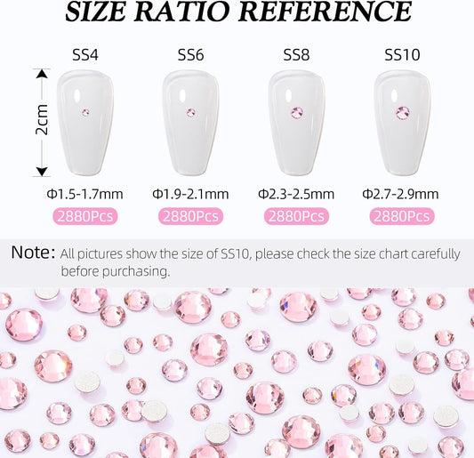 Rose Flatback Rhinestones, Glass Rhinestones for Nail Art and Craft, Glue Fix, Loose Crystal Gemstones(Rose, SS6, 2880pcs, 1.9-2.0mm)