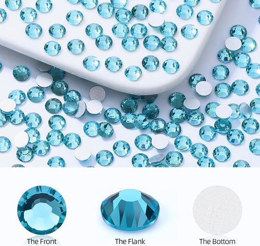 Capri Blue Flatback Rhinestones, Glass Rhinestones for Nail Art and Craft, Glue Fix, Loose Crystal Gemstones(Capri Blue, SS8, 1440pcs, 2.3-2.5mm)