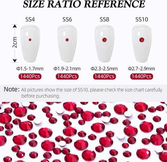 Red Flatback Rhinestones, Glass Rhinestones for Nail Art and Craft, Glue Fix, Loose Crystal Gemstones(Red, SS4, 2880pcs, 1.5-1.7mm)