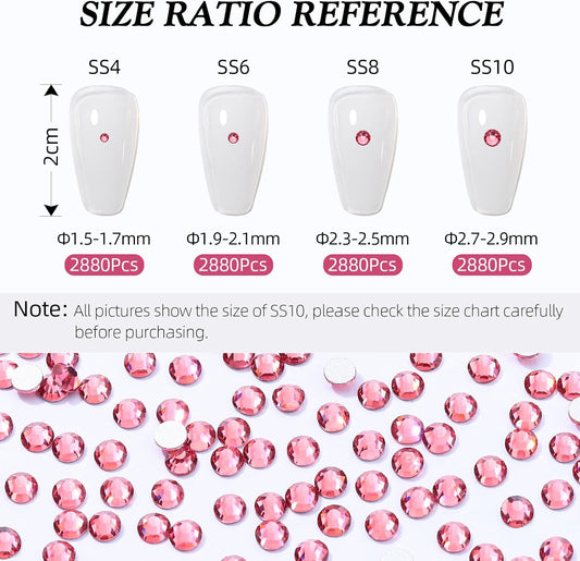 Rose Flatback Rhinestones, Glass Rhinestones for Nail Art and Craft, Glue Fix, Loose Crystal Gemstones(Rose, SS10, 2880pcs, 2.7-2.8mm)