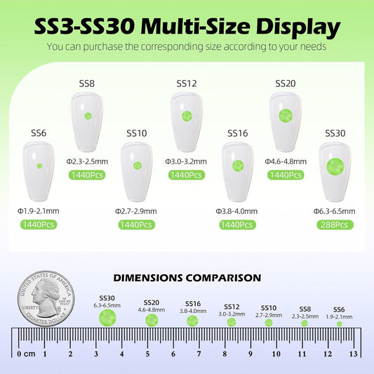 Mocha Lt.Green Flatback Rhinestones, Glass Rhinestones for Nail Art and Craft, Glue Fix, Loose Crystal Gemstones(Mocha Lt.Green, SS12, 1440pcs, 2.9-3.0mm)