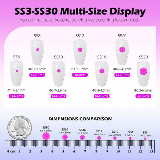 Fuchsia Flatback Rhinestones, Glass Rhinestones for Nail Art and Craft, Glue Fix, Loose Crystal Gemstones(Fuchsia, SS8, 1440pcs, 2.3-2.5mm)
