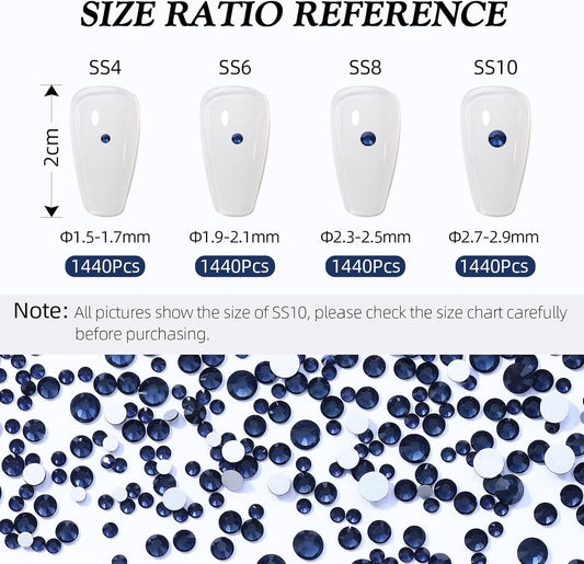 Sapphire Flatback Rhinestones, Glass Rhinestones for Nail Art and Craft, Glue Fix, Loose Crystal Gemstones(Blue, SS4, 2880pcs, 1.5-1.7mm)