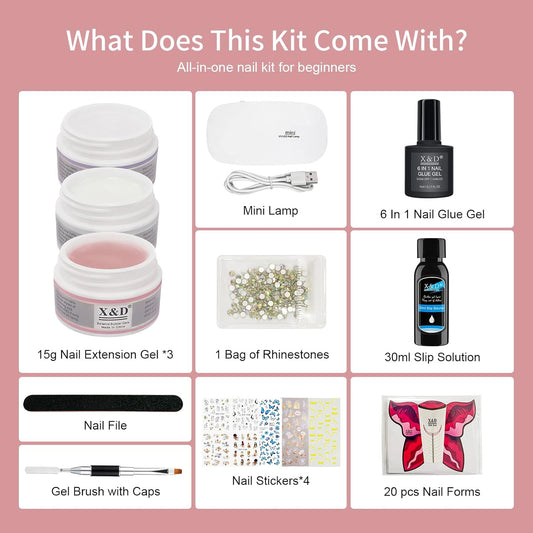 X&D Poly Gel Nail Kit 3 Colors Natural Clear Colors Poly Nail Gel Kit Nail Extension Builder Nail Gel Quick Manicure Home DIY Set for Women (Transparent, Nude Pink, White)