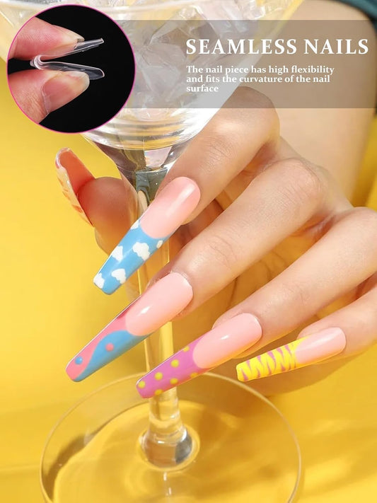 TOROKOM 120Pcs Poly Extension Gel Dual Nail Forms Clear Nail Forms Full Cover Coffin Nail Molds 12 Sizes for Gel Manicure Nail Art Design Salon&DIY