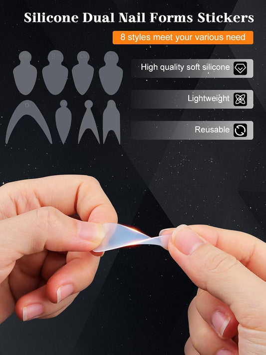 TOROKOM Dual Form Kit, 192PCS Poly Gel Forms for French Nails, 96PCS Reusable Silicone Pads, 5PCS Clips, Brush Pen, Files Buffer, Extension Kit for Beginner