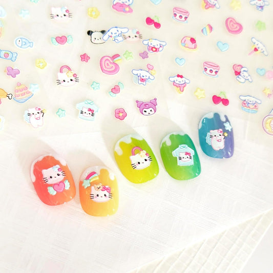 4 Sheets of 3D Nail Stickers - 274 Cute Nail Decals - Embossed Nail Stickers for Kids | Kawaii Theme - Stars, Hearts, Bunny, Pink Bear, Puppy, Cats | Glow in The Dark