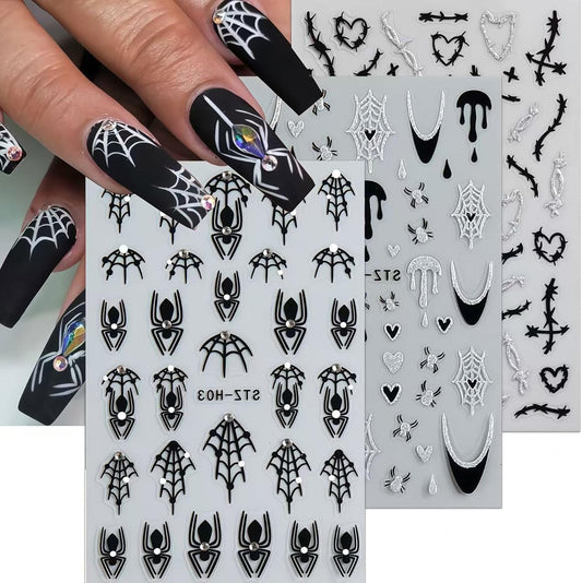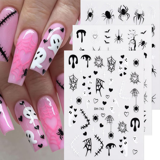 6 Sheets Halloween Nail Art Stickers Nail Decals 3D Self-Adhesive Spider Web Spider Cute Ghost Bat Nail Stickers Design Fall Holiday Salon DIY Nails Decoration Accessories for Women