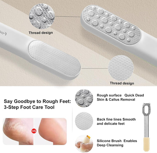 Double-Sided Stainless Steel Foot File & Callus Remover, Professional Pedicure Tool for Dry & Wet Feet, Hard Skin & Corn Remover with Threaded Design, Easy to Clean, White (Home Salon Use)