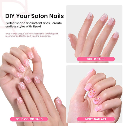 Beetles Tipex Gel Nail Kit Extra Short Square: 16 Sizes Instant Apex Nail Tips, 224 Pcs Pre-Building False Nail Tips with Tipex Nail Glue, Mini Nail Lamp-Thick Acrylic Nail Set