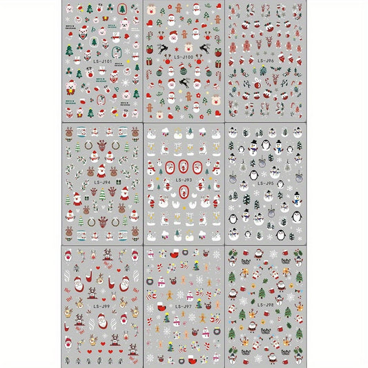 9 Sheets Christmas Nail Art Stickers 3D Christmas Nail Decals with Santa Claus Snowflake Elk Deer Snowman Xmas Tree Design Manicure Decal Winter Cartoon Christmas Nail Art DIY Decor Supplies for Women