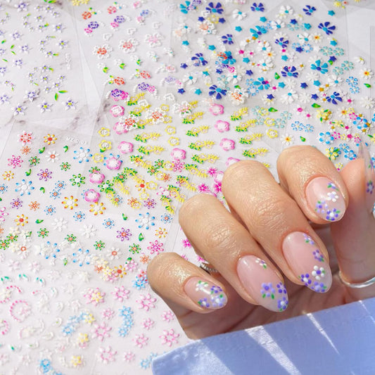 30 Sheets 3D Self-Adhesive Flower Nail Stickers - Black, White, Colorful Cherry Blossoms, Daisy Art for Gel Nails - Spring Design Supplies, DIY Charms Decoration for Women