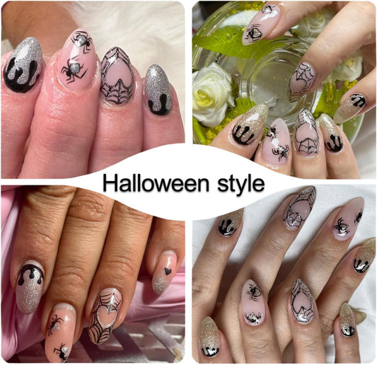 8 Sheets Halloween Nail Art Stickers 3D Self-Adhesive Shiny Gold White Silver Spider Web and Spider with Glitter Nail Art Design Sticker Festival Spiders Nail Stickers for DIY Manicure Decoration