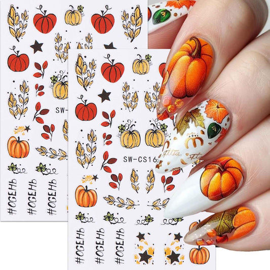 8 Sheets Fall Nail Art Stickers Autumn Maple Leaf Pumpkin Nail Sticker 3D Self-Adhesive Yellow Maple Leaves Nail Decals Designs Thanksgiving Day Holiday DIY Manicure Decoration Sticker for Women