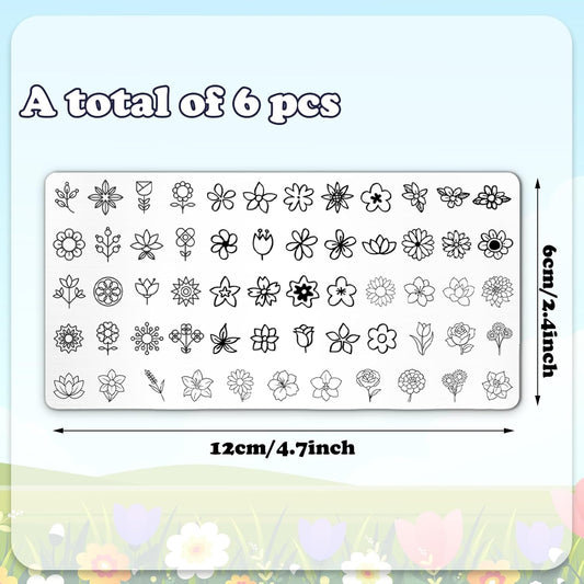 Whaline 6Pcs Spring Summer Floral Nail Plates Stamping Set Flower Leaves Stamp Templates Nail Art Plates for DIY Print Manicure Salon Design