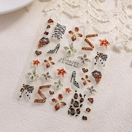 Fall Stickers para Uñas Nail Stickers Self-Adhesive Sticker para Uñas Leopard Print 3D Flower Floral Nail Stickers Art Design Accessories Hight Quality 2 Sheets