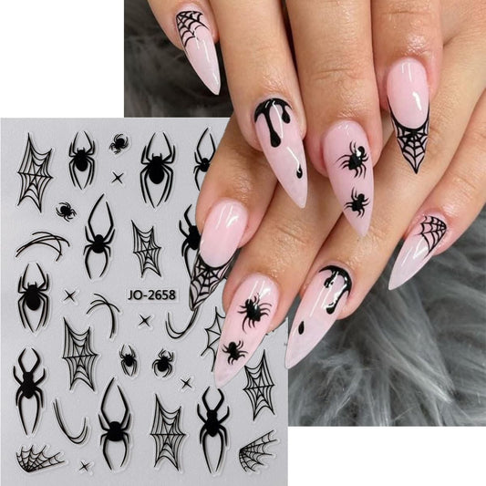 Halloween Nail Stickers Black Nail Decals Self-Adhesive Nail Art Stickers Spider Web Heart Star Moon Bat Design Spider Nails Sticker for Nails Art Decor Holiday Party Manicure for Women 8 Sheet