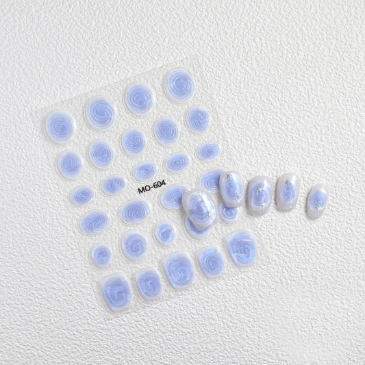 Laser Swirl Nail Art Stickers Decals Pink Blue Purple Nails Stickers Cute 5D Embossed Nails Decal Self-Adhesive Nail Art Decal for Women Manicure Decor