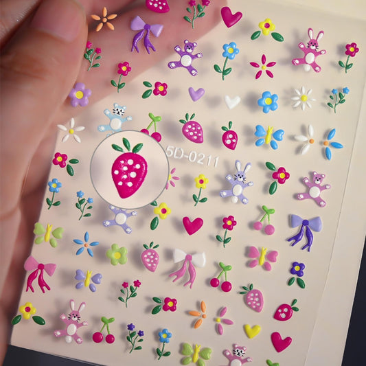 Stickers para Uñas Nail Stickers Self-Adhesive Sticker para Uñas Colorful 3D Flower Embossed Calcomanías Stickers Art Design Accessories Hight Quality 8 Sheets