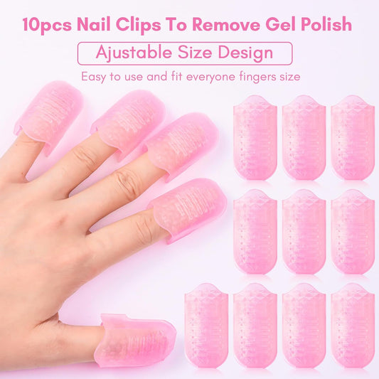 Makartt Nail Polish Remover Tools Kit 10 Pcs, Soak Off Cap Clips, with Double-Ended Cuticle Pusher for UV Gel Polish Removal, Acrylic Art Manicure Accessories, Pink