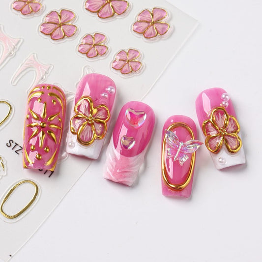 Stickers para Uñas Nail Stickers Self-Adhesive Sticker Gold Pink 3D Flower Embossed Calcomanías para Uñas Colorful Floral Art Design Accessories Hight Quality 3 Sheets