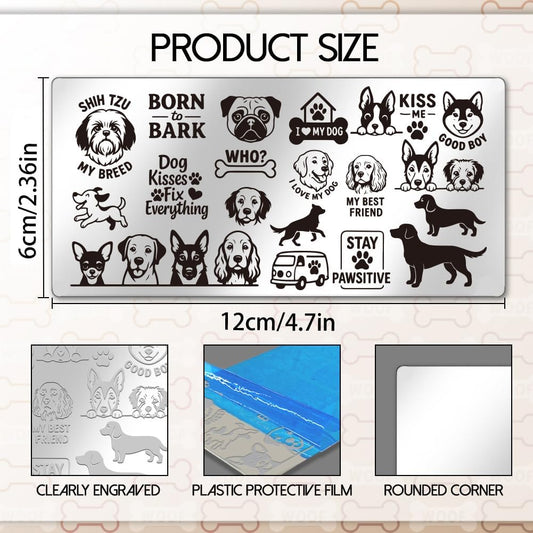 UNICRAFTALE 3Pcs Cute Dog Nail Stamp Plates Set Pets Animals Nail Stamping Plate Puppy Love Image Nail Stencils Dog Paws Design Nail Art Stamping Template with Nail Scraper for Dog Lover Manicure