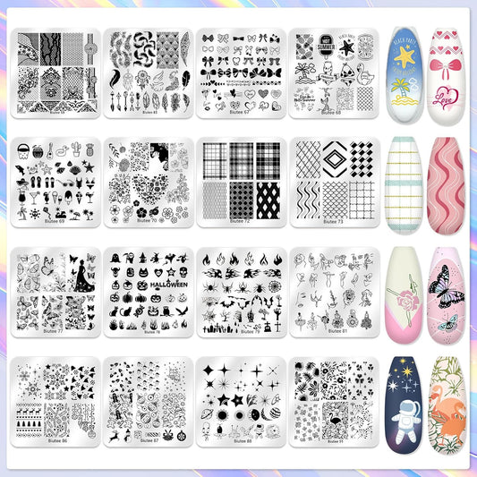 Biutee Nail Stamping Plate Set 12Pcs Nail Art Stamping Plates Nail Stamping Kit Nail Stamper Kit Flower Leaves Animal Lace Star Halloween Christmas Design Nail Stamp Plate