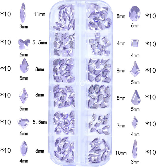 Nail Rhinestones - 3D Multi Shape Size, Flat Back, Crystals Manicure Rhinestones Charms, Light Purple Nail Gems, with Kit, for Nail Art, Bedazzling Acrylic Nails, DIY Decor