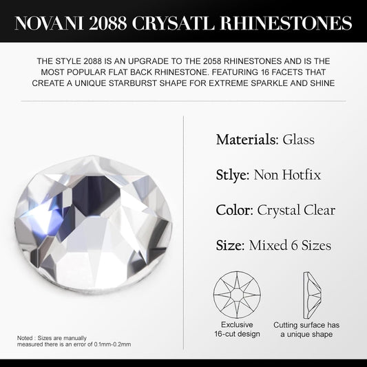 Novani Clear Rhinestones 1440pcs Flat Back Round Rhinestone Style 2088 Sparkly Crystal Gemstones for Nail Art and Crafting SS6,1.9-2.0mm