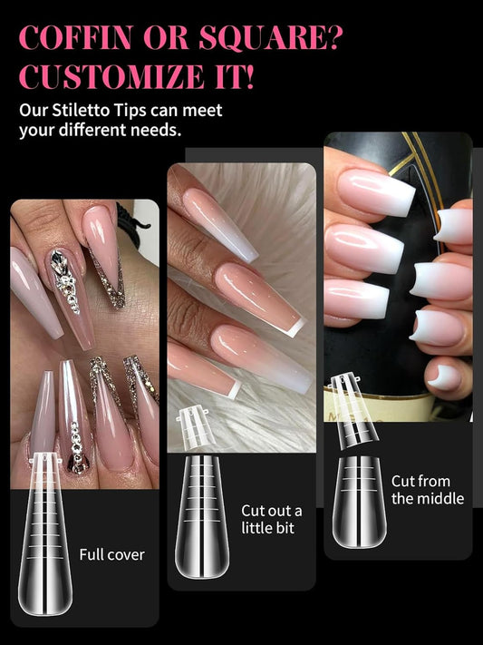 Stiletto Nail Tips,1000 PCS Artificial Full Cover Fake Nails Soft Gel Tips 10 Sizes with Box for Home DIY Nail Salon (Clear and Natural 5)