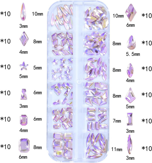 Nail Rhinestones - 3D Multi Shape Size, Flat Back, Manicure Rhinestones Charms, Crystal Aurora Gems, with Kit, for Nail Art, Bedazzling Acrylic Nails, DIY Decor