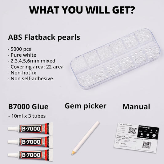5000Pcs Flatback Pearls for Crafting Bedazzling, White Mix 2/3/4/5/6mm Half Pearl Beads Flat Back for Crafts Clothing Tumbler Shoes Scrapbooking Charms Wedding Gown Glasses Boots with B7000 Glue