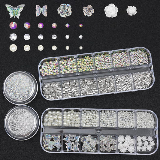 4 Boxes Nail Rhinestones and Pearls Nail Charms, 11000 PCS Crystals Nail Gems and Rhinestones for Nails, Nail Jewels Nail Art Supplies Luxurious Nail Accessories for Women Nail Decorations