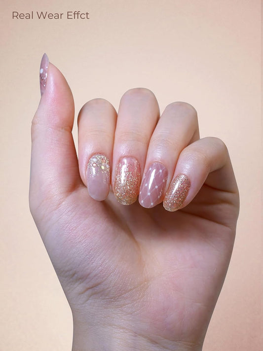 Pre Cured Gel Nail Strips - 44PCS Salon Quality Gel Nail Stickers - Long Lasting Polish Wraps for Women no UV Light Needed Easy Apply& Remove (Gilded Desire Gold)
