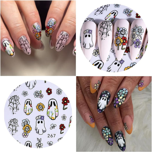 Flower Nail Stickers Fall Nail Decals 6PCS 3D Self-Adhesive White Yellow Blue Orange Floral Nail Design Autumn Nail Art Supplies DIY Acrylic Nail Art Decorations Accessories Flowers Sticker for Women