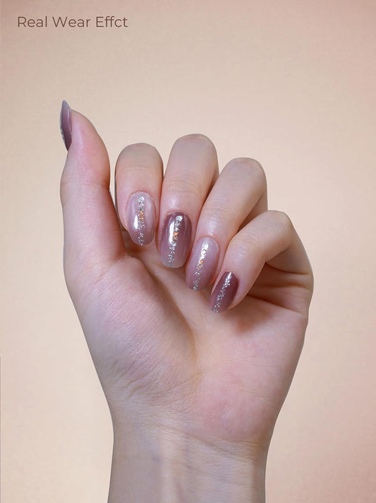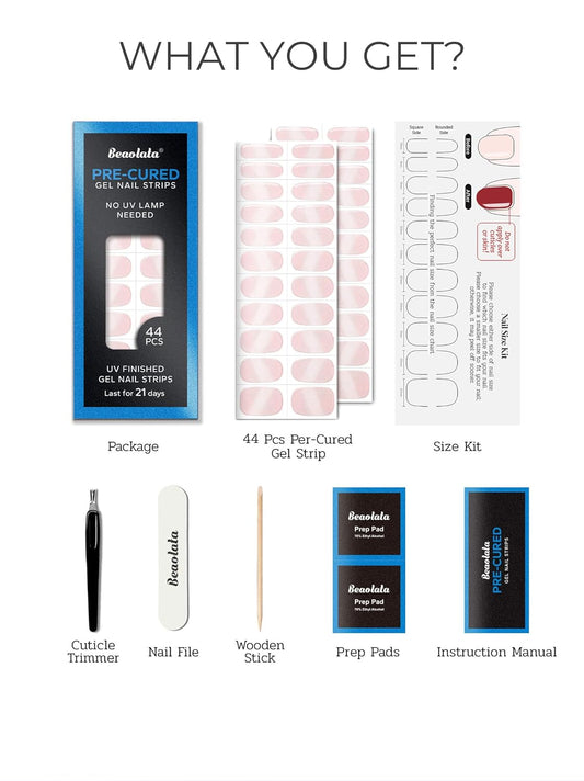 Pre Cured Gel Nail Strips - 44PCS Salon Quality Gel Nail Stickers - Long Lasting Polish Wraps for Women no UV Light Needed Easy Apply& Remove (Beige Nude)