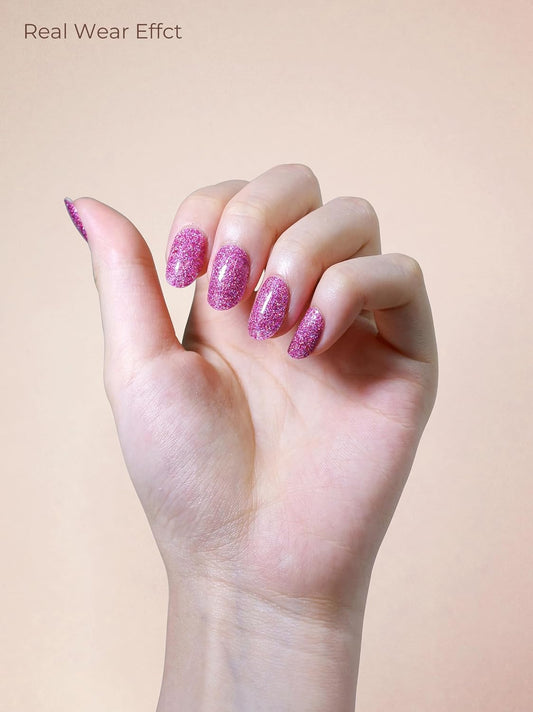 Pre Cured Gel Nail Strips - 44PCS Salon Quality Gel Nail Stickers - Long Lasting Polish Wraps for Women no UV Light Needed Easy Apply& Remove (Neon Pink)